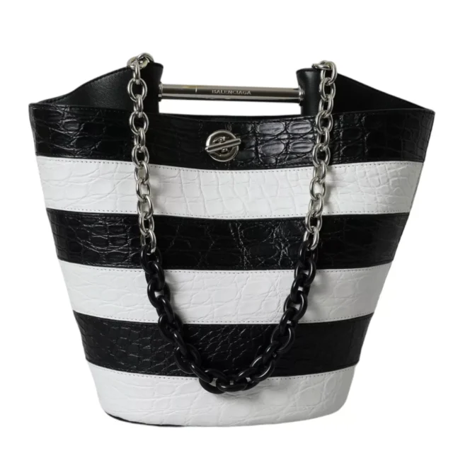 Balenciaga’s Crocodile Leather Maxi Bucket Bag is more than just a fashion statement—it’s a versatile companion for all occasions. The black-and-white color palette complements any outfit, making it suitable for formal dinners, chic office attire, or casual weekend outings. Its unique combination of exotic leather and meticulous detailing makes it stand out from other luxury bags, giving you an accessory that exudes exclusivity and sophistication.